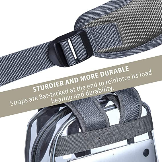 • Reinforced Padded Straps - Straps of clear bookbags are Bar-tacked at the end to reinforce its load bearing up to 65lbs. Soft-padded straps provide you with comfortable wearing experience. Length of the strap can be adjusted from 16" to 31".