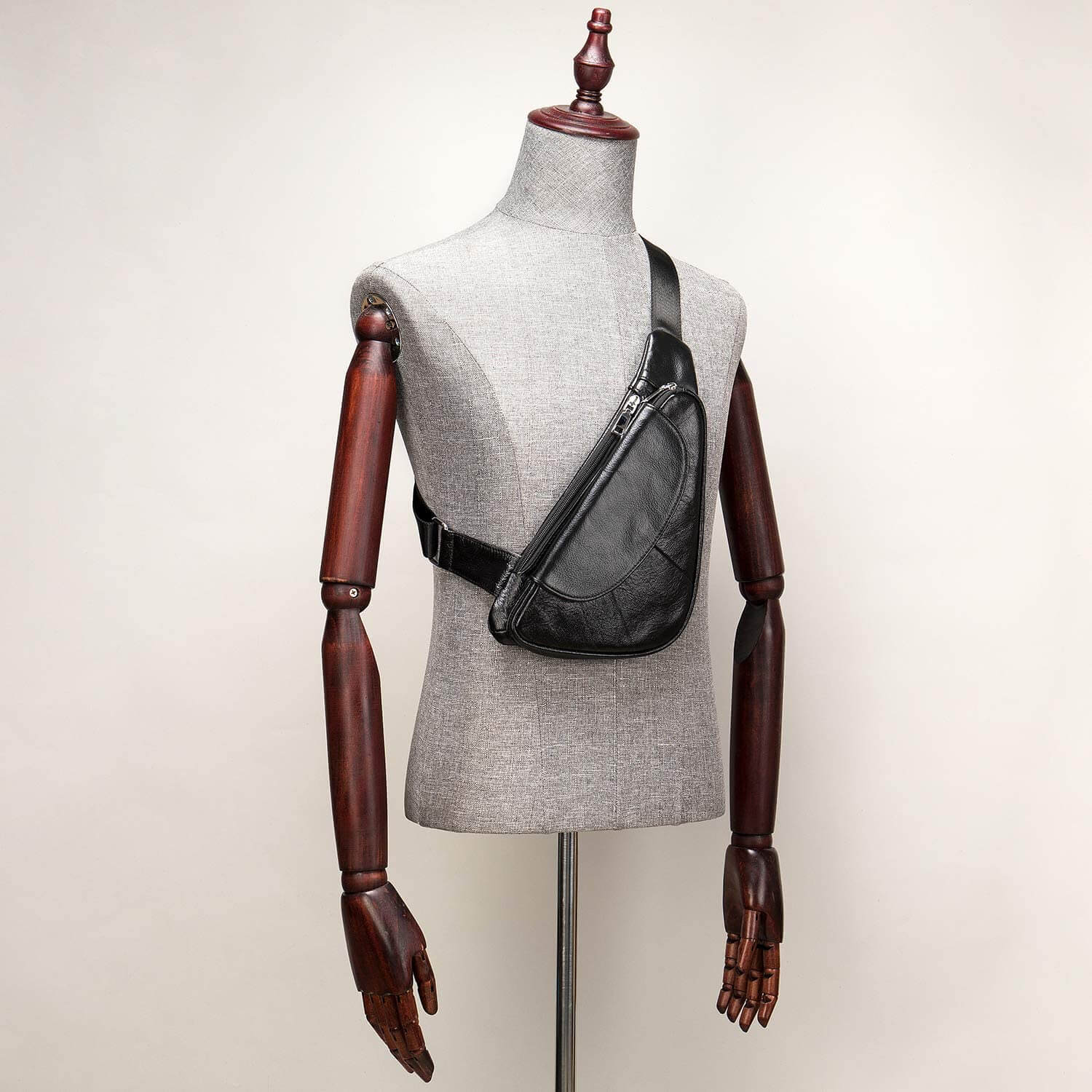 Genuine Leather Sling Bag Triangle Crossbody Bags Front Chest Day Pack One Shoulder Strap Backpack